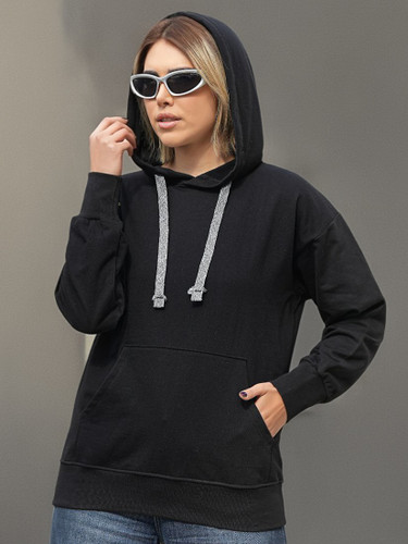 هودی دورس کلاهدار زنانه جیب کانگورویی مشکی