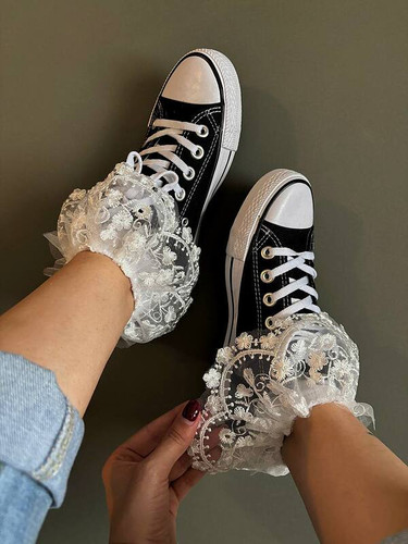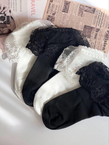 جوراب زنانه پاپوشی دور مچ گیپوری مشکی وارداتی اورجینال