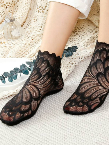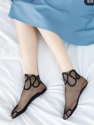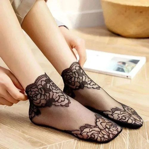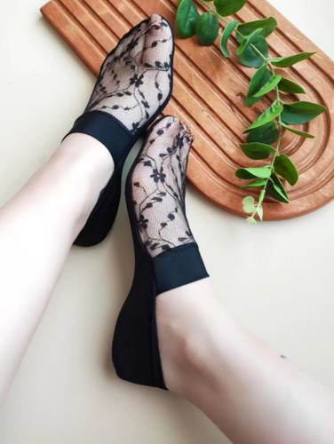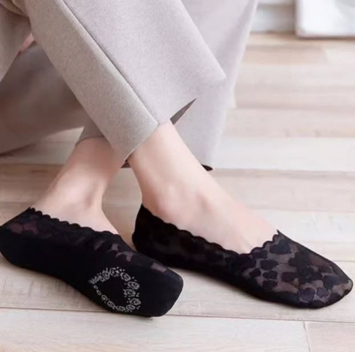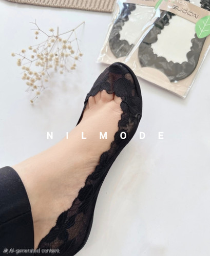 جوراب زنانه پاپوشی دور مچ گیپوری مشکی وارداتی اورجینال
