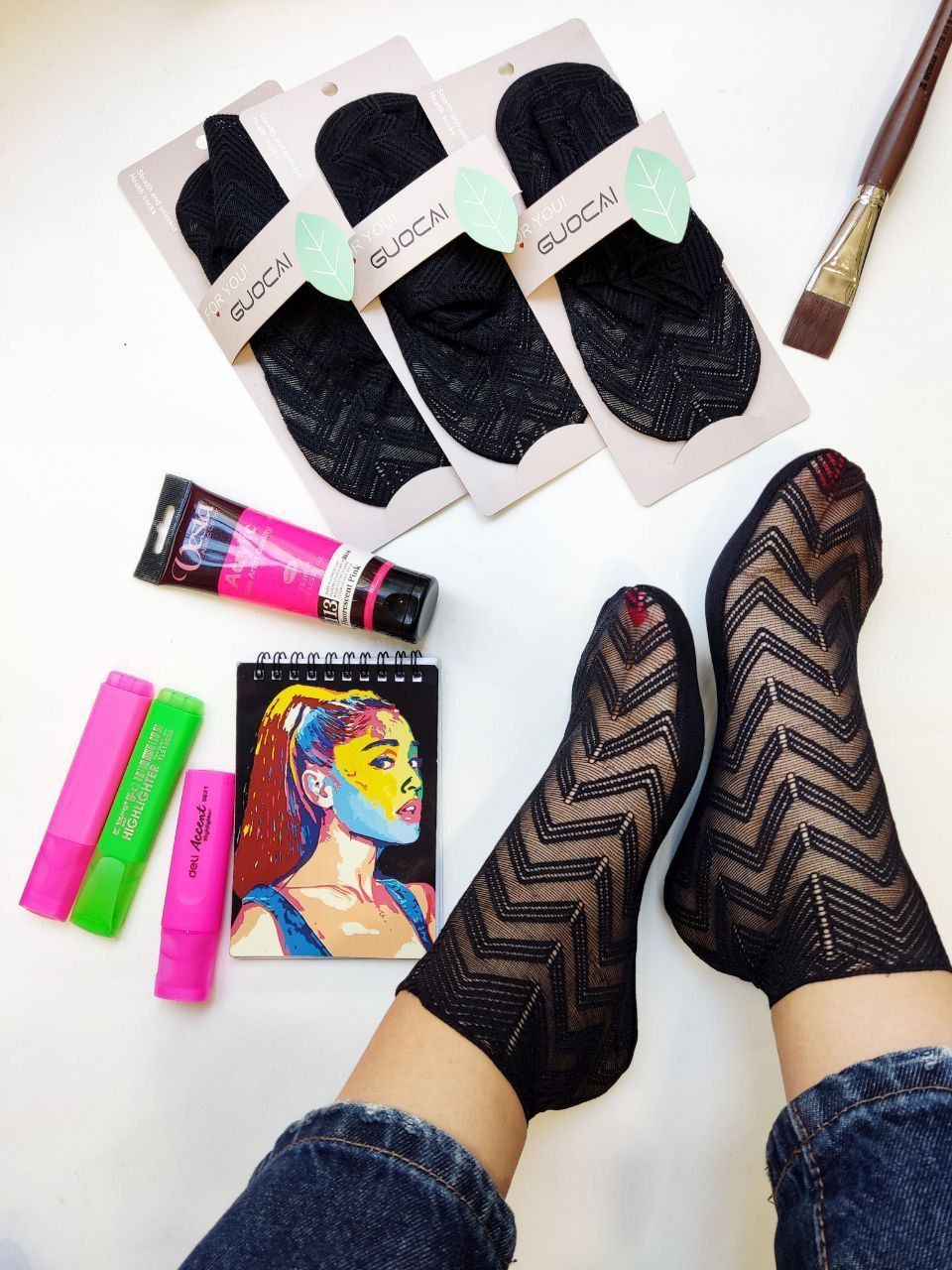 جوراب زنانه پاپوشی دور مچ گیپوری مشکی وارداتی اورجینال