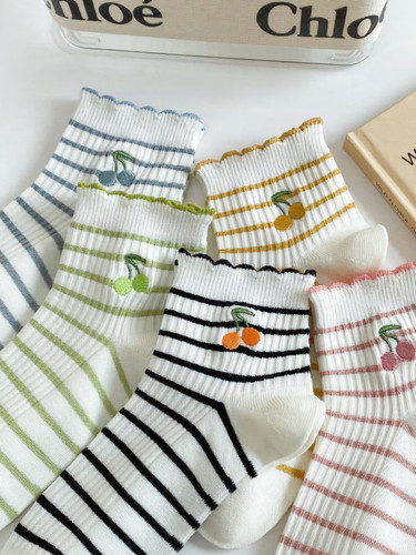 جوراب مچی راه راه گلدوزی نخ پنبه وارداتی