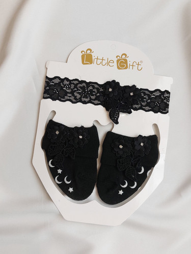 ست هدبند و جوراب نوزادی مشکی دخترانه