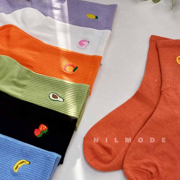 جوراب ساقدار گلدوزی میوه نخ پنبه رنگی