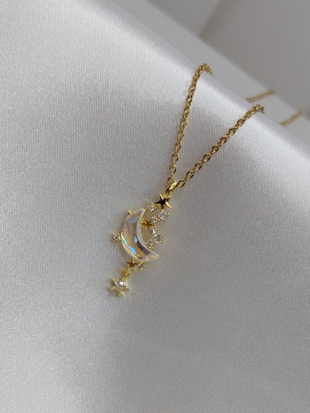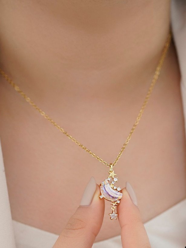 گردنبند استیل ماه و ستاره طلایی