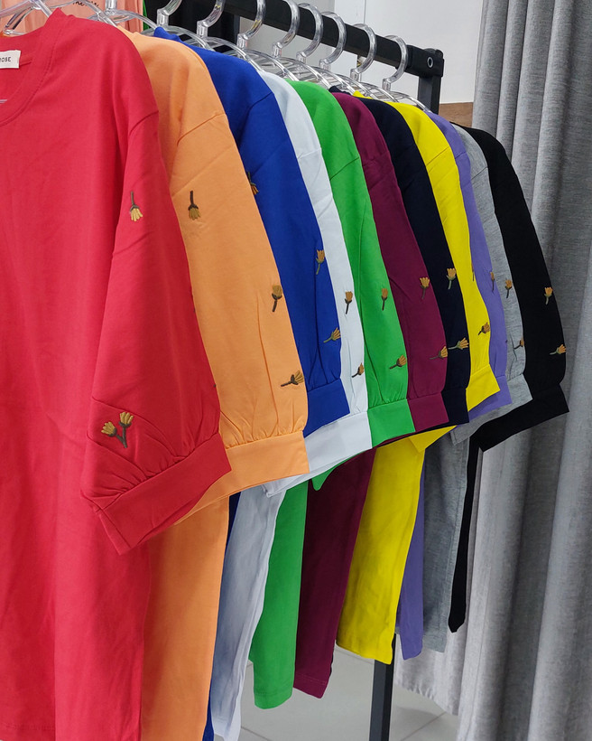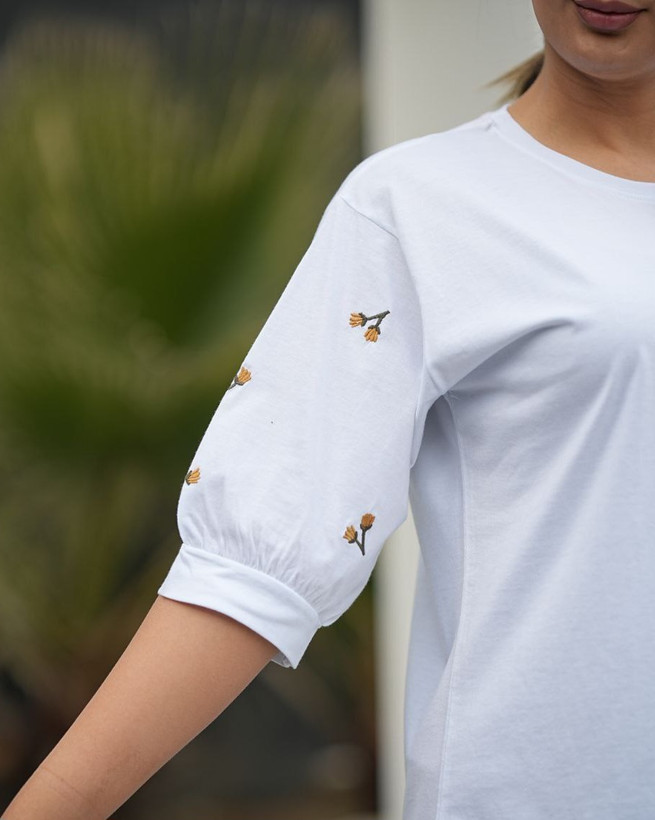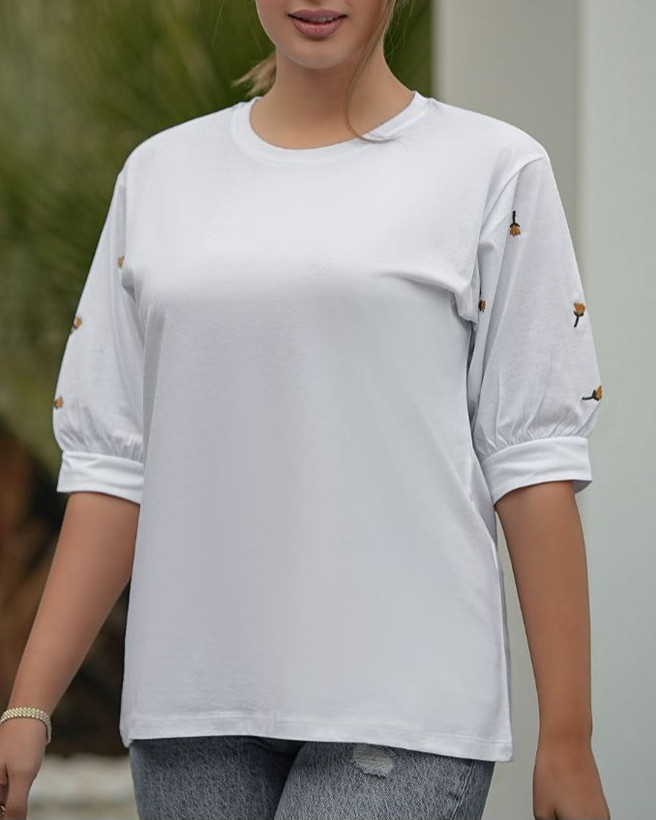 تیشرت زنانه نخ پنبه آستین سه ربع گلدوزی