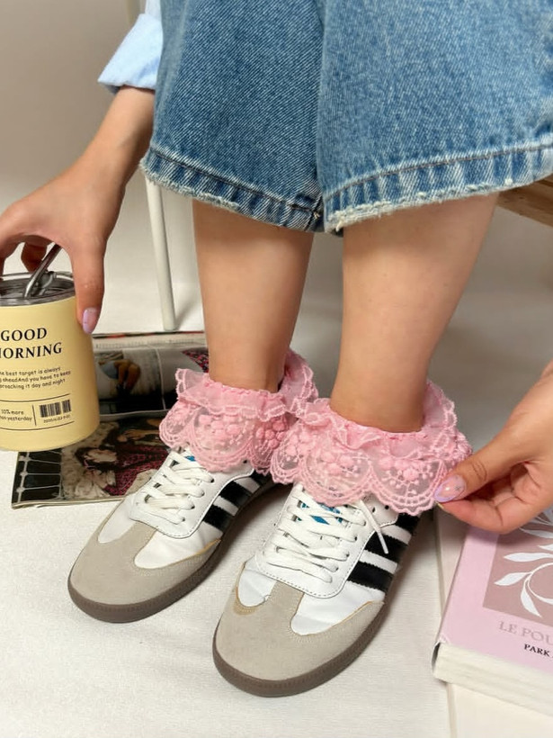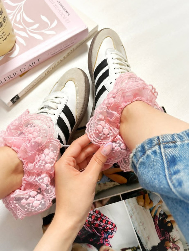 جوراب لب تور زنانه و دخترانه عروسکی صورتی