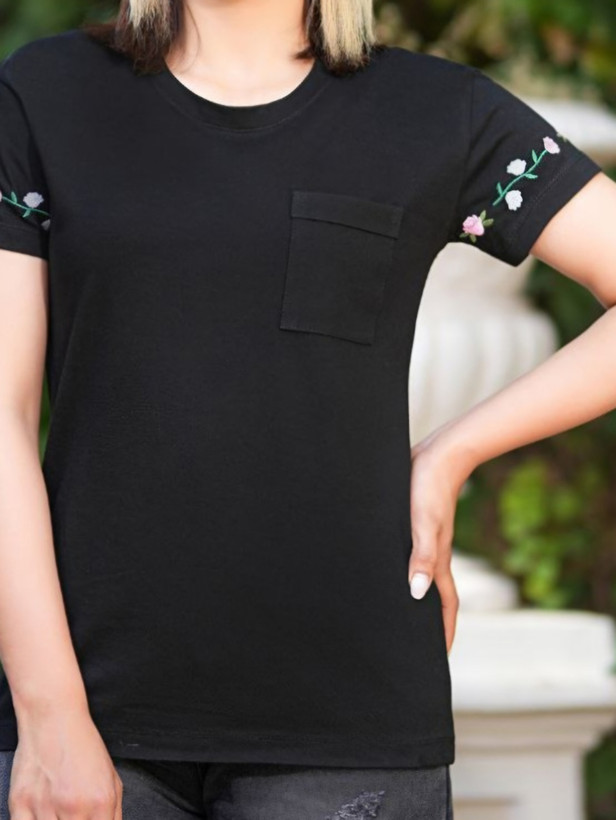 تیشرت زنانه نخ پنبه جیب دار