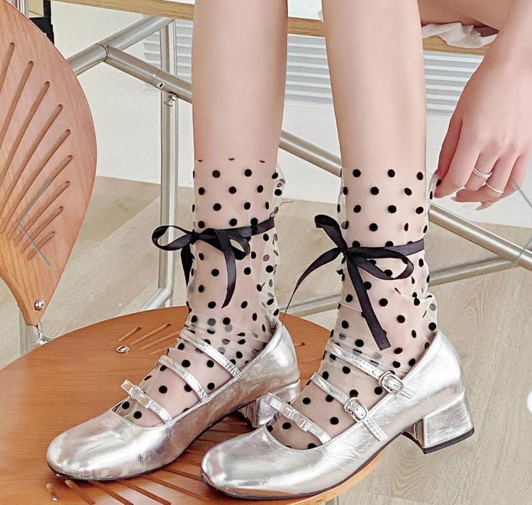 جوراب لش طرح خال خالی مشکی وارداتی