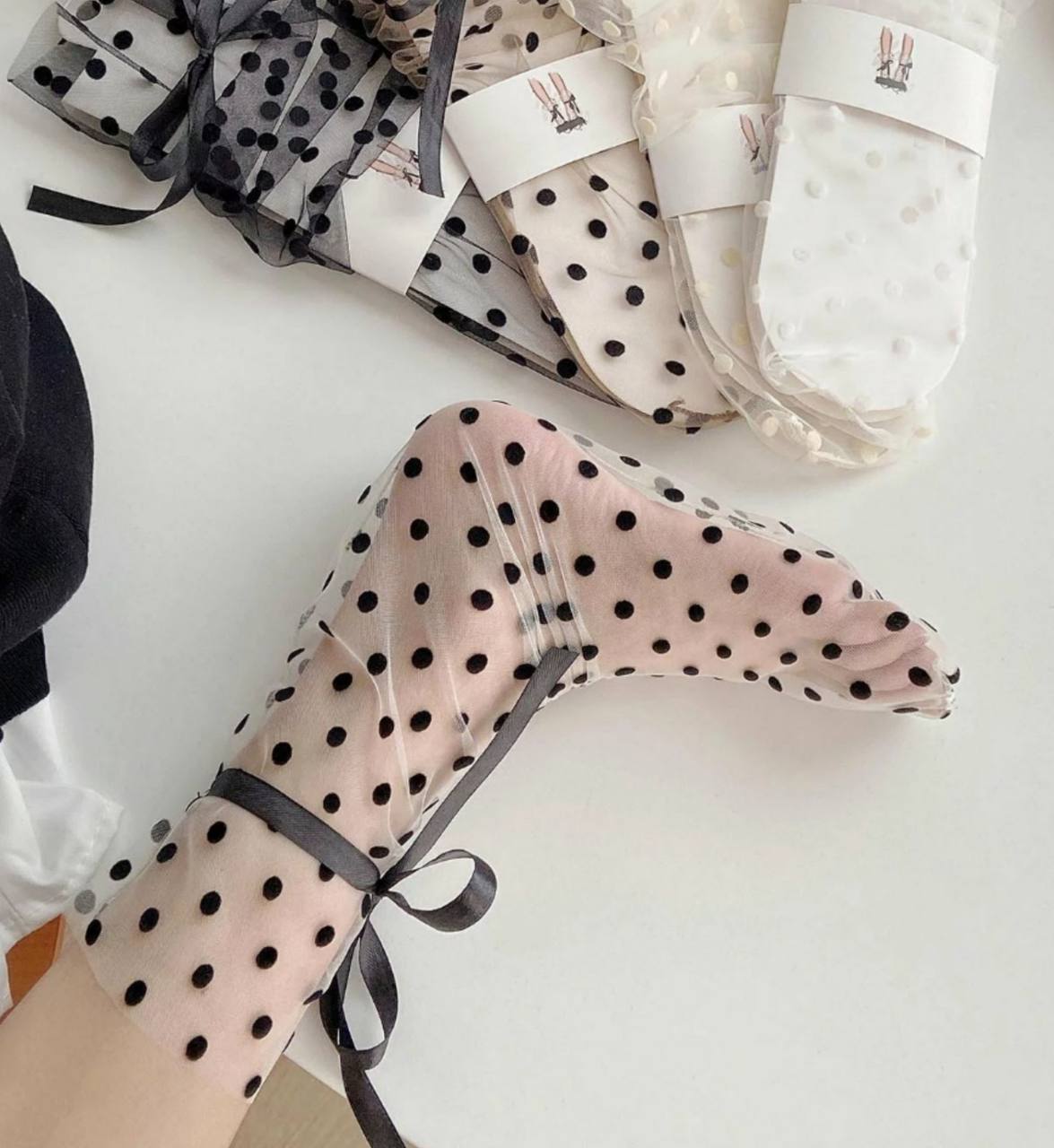 جوراب لش طرح خال خالی مشکی وارداتی