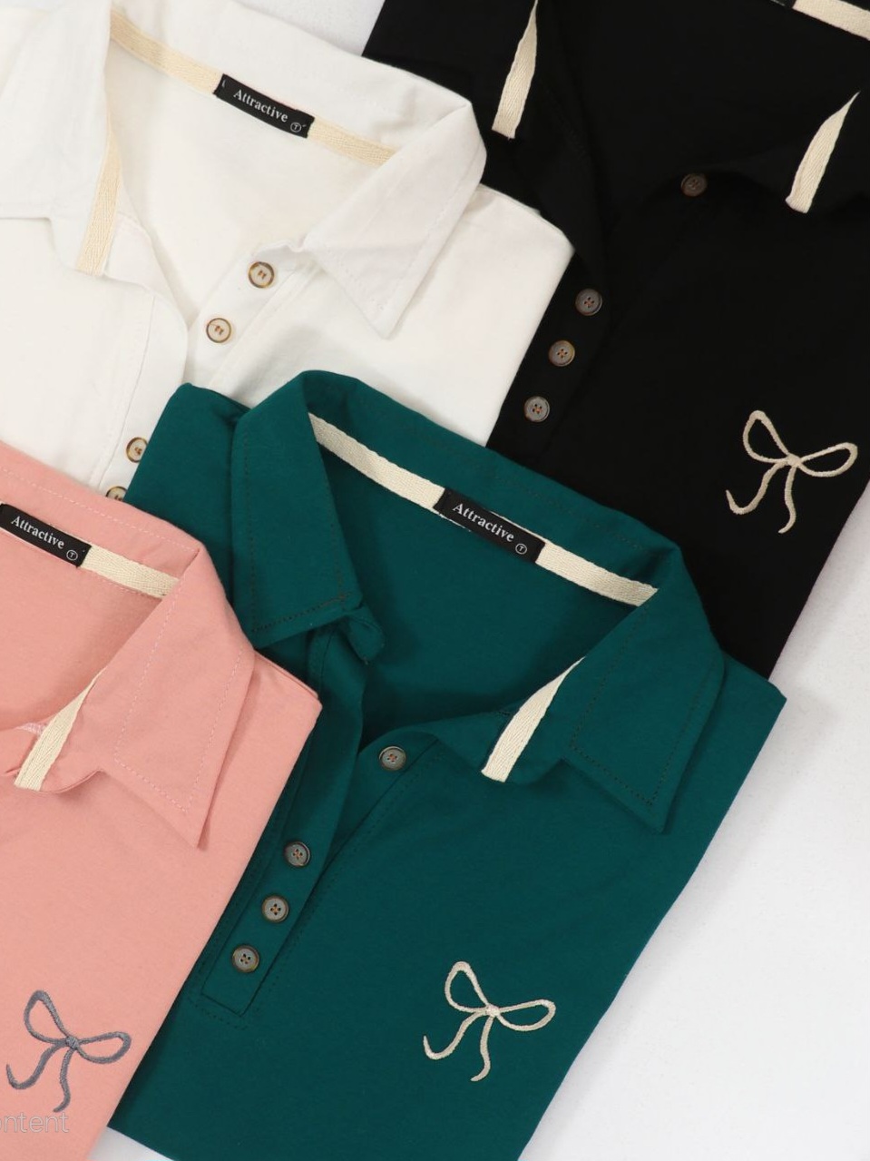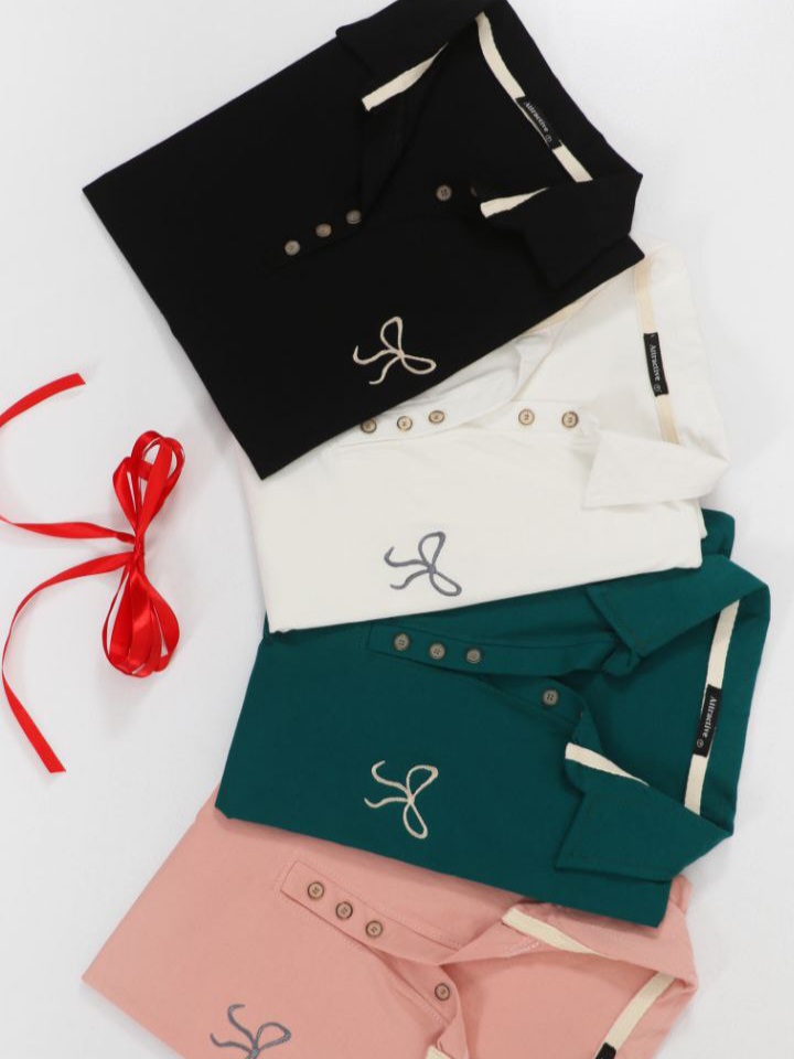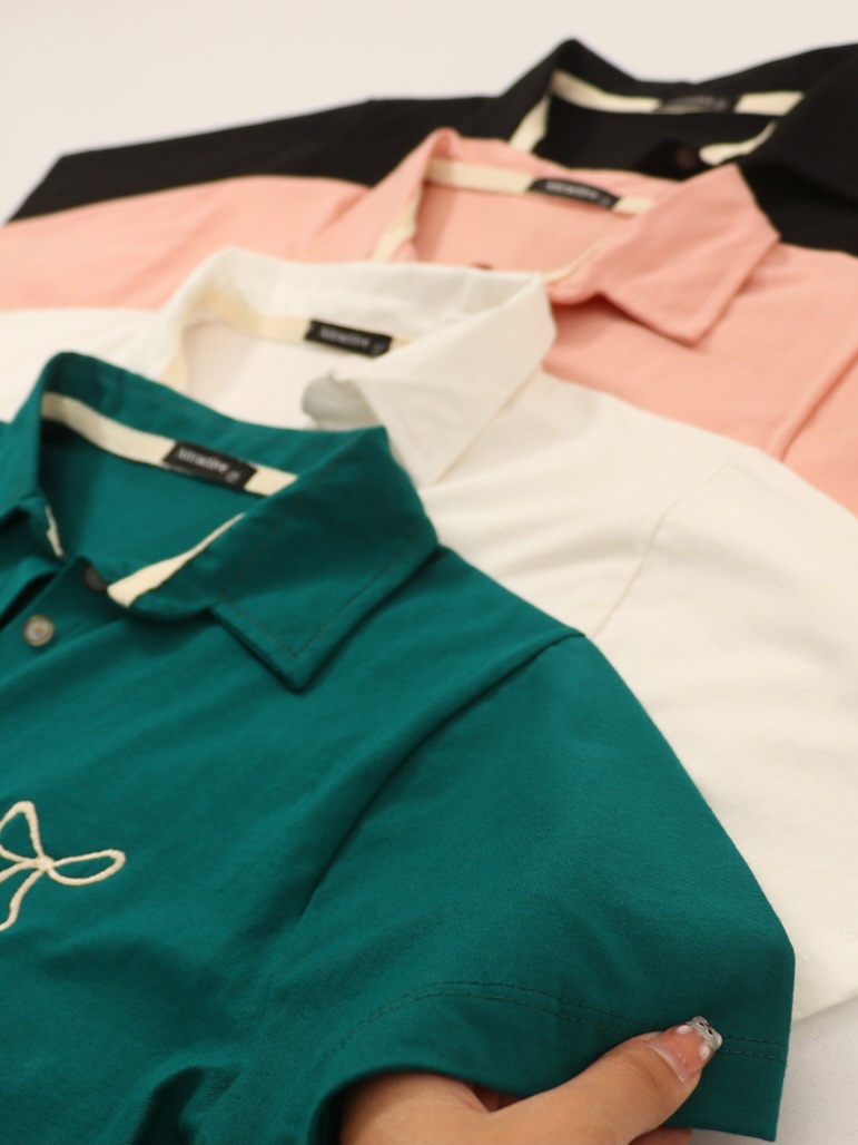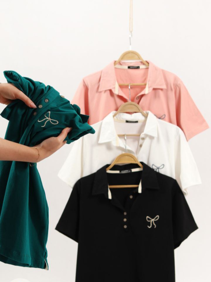 تیشرت زنانه یقه دار گلدوزی طرح پاپیون جنس سوپر پنبه اعلا سایزفری 42_46 دورسینه 116سانت ( با کشسانی تا 135سانت کش میاد ) قدتیشرت 64 سانت