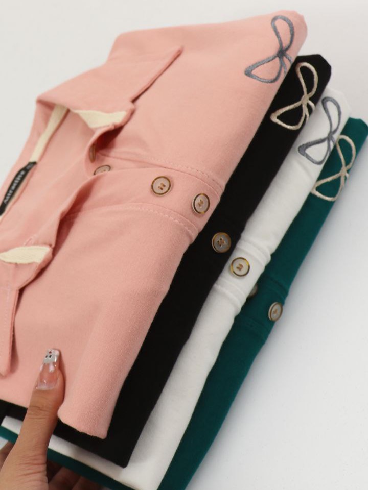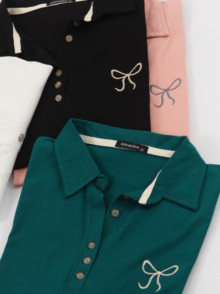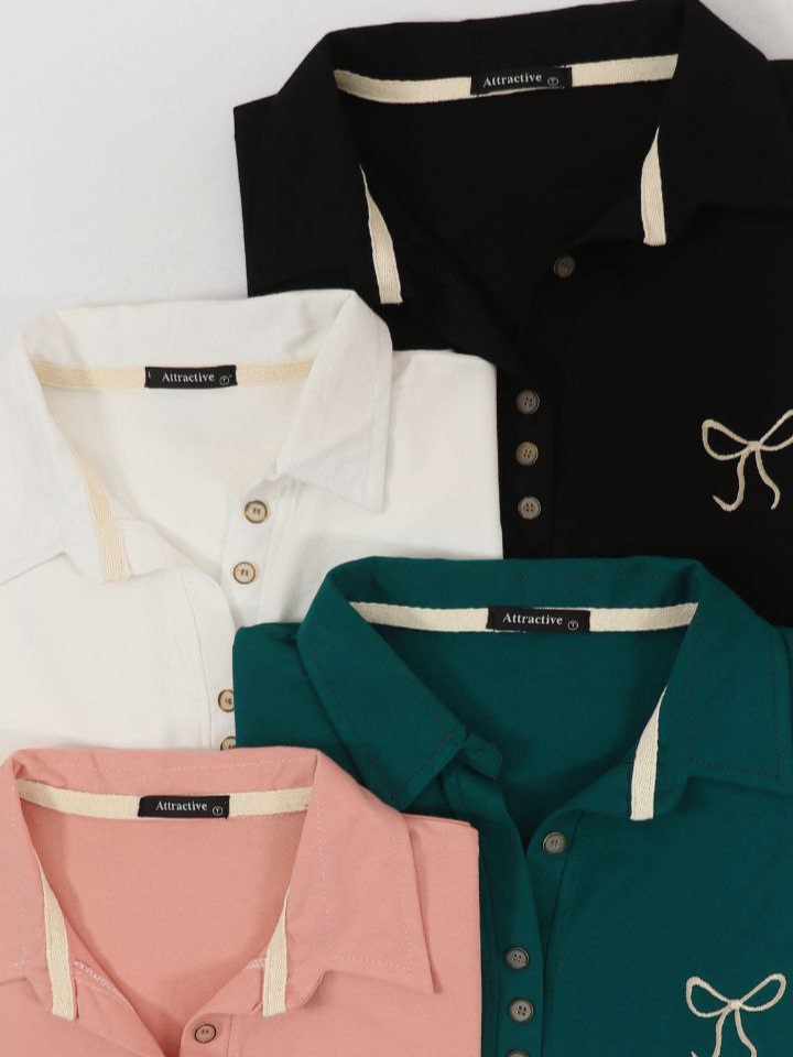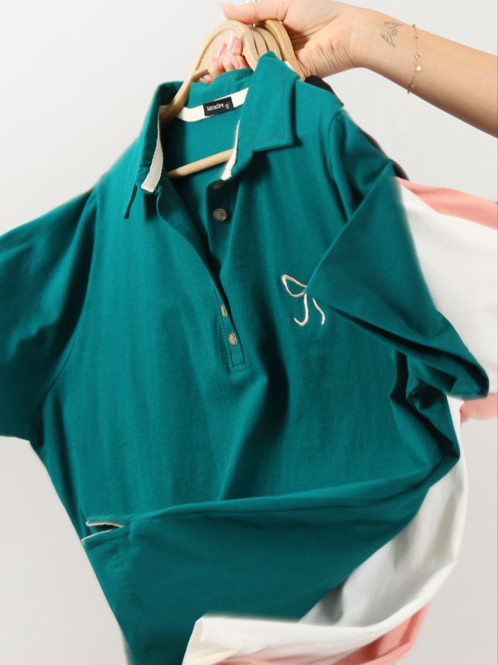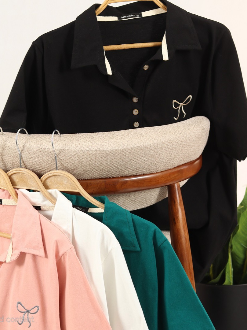 تیشرت زنانه یقه دار گلدوزی طرح پاپیون جنس سوپر پنبه اعلا سایزفری 42_46 دورسینه 116سانت ( با کشسانی تا 135سانت کش میاد ) قدتیشرت 64 سانت