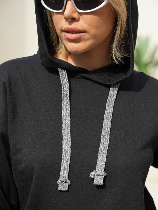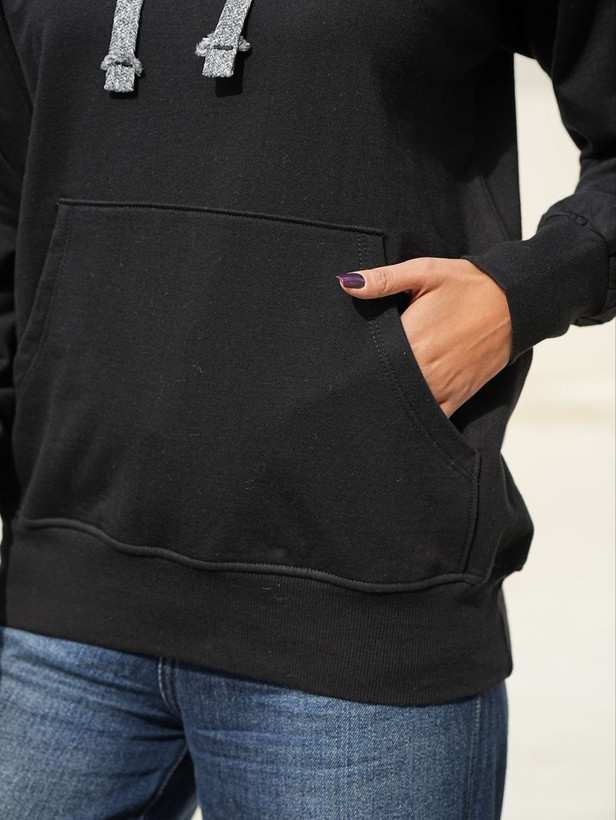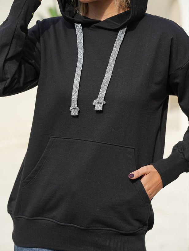 هودی دورس کلاهدار زنانه جیب کانگورویی مشکی