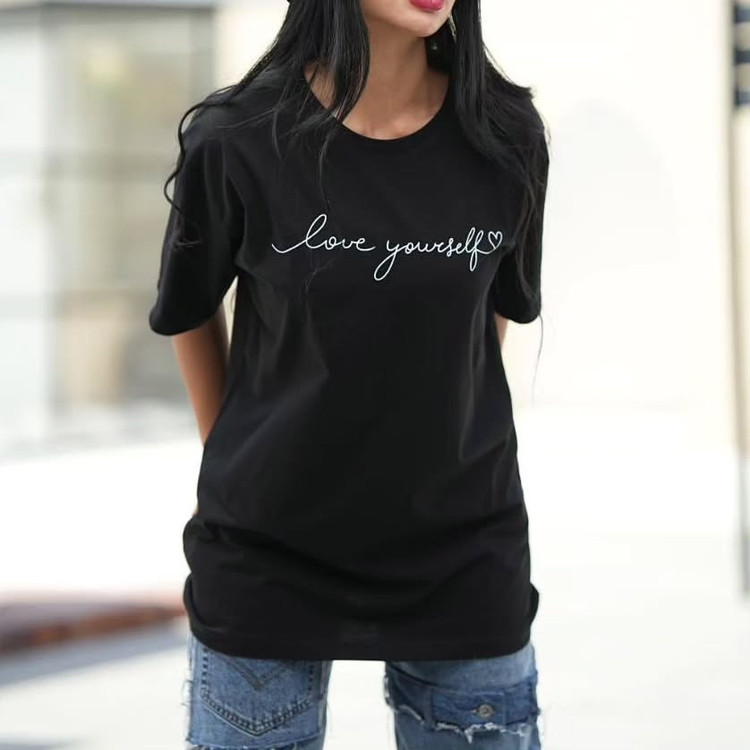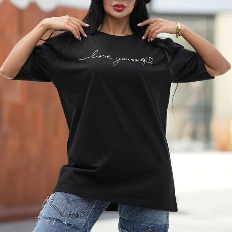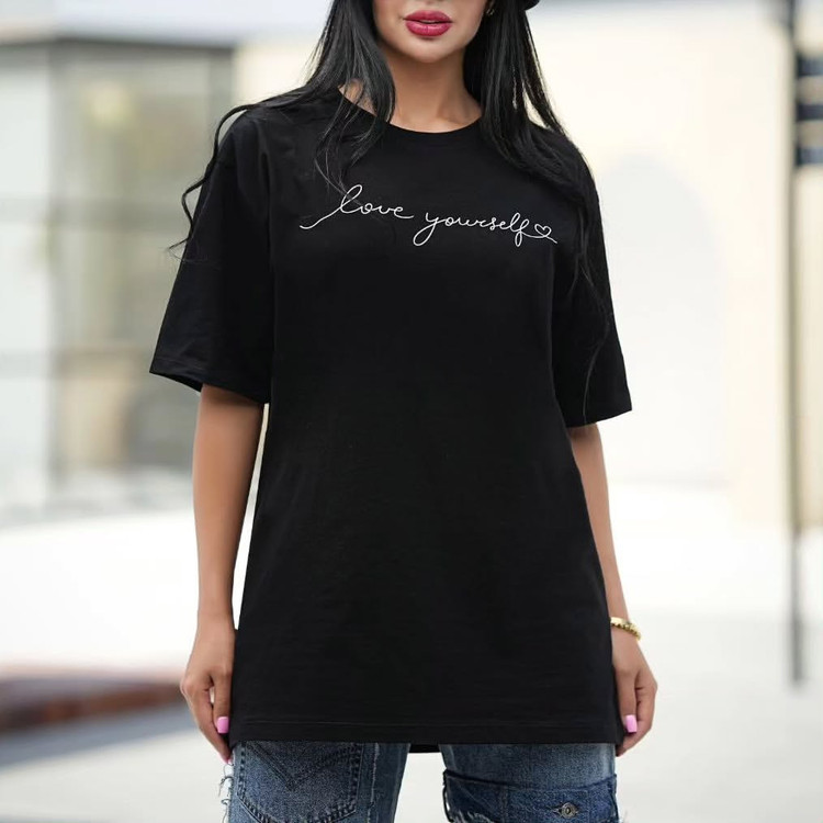 تیشرت لانگ زنانه نخ پنبه لاو مشکی