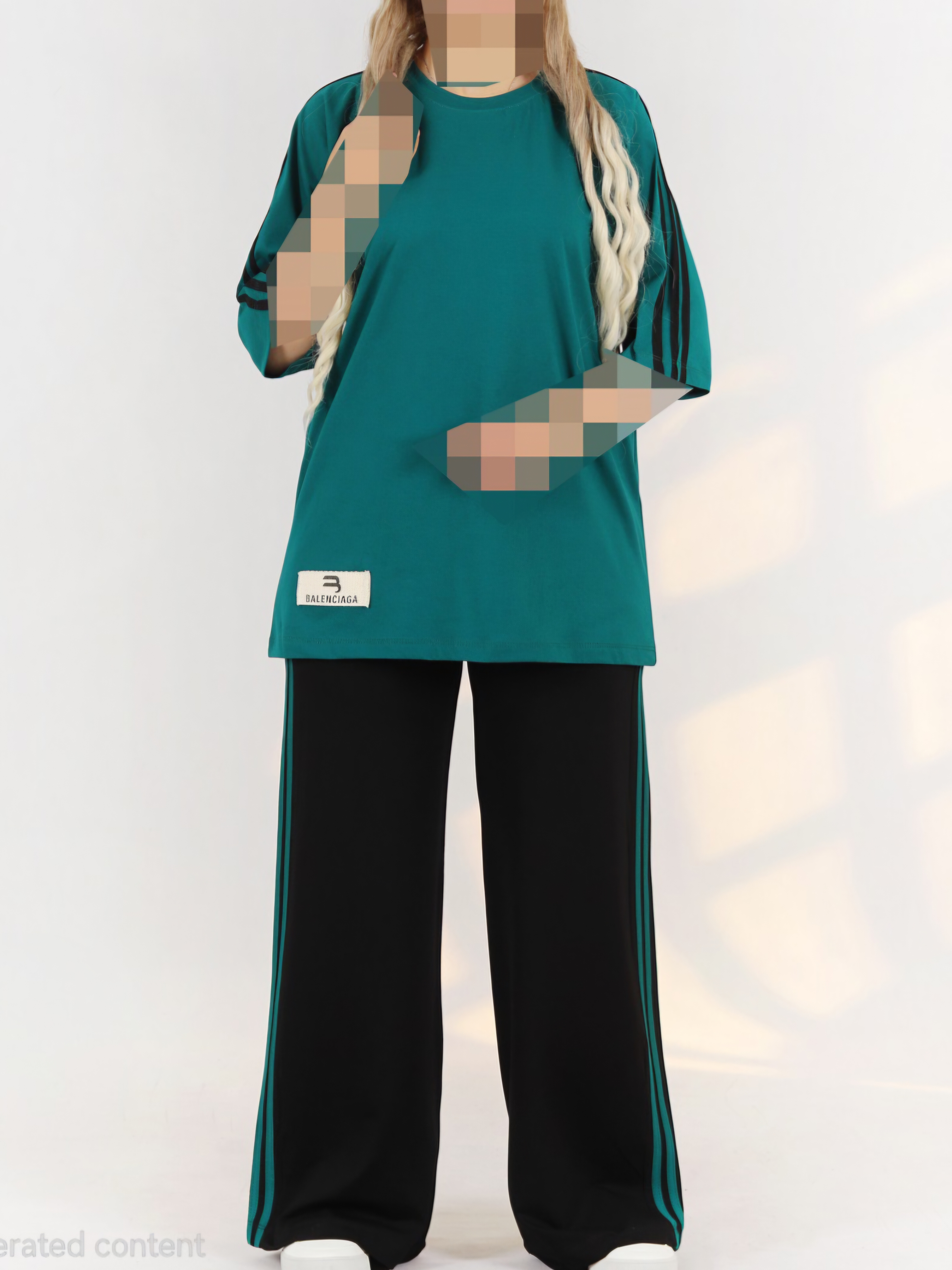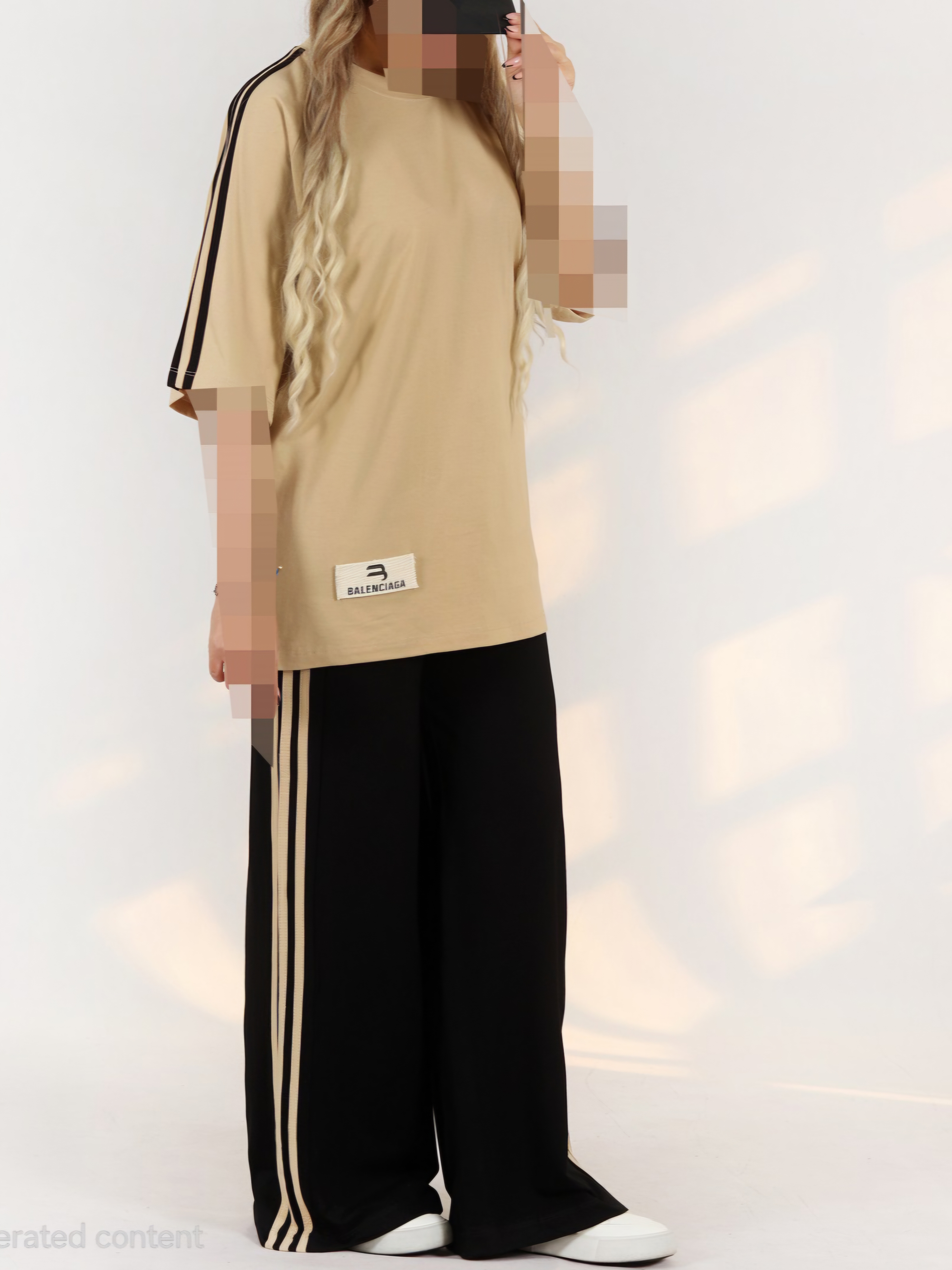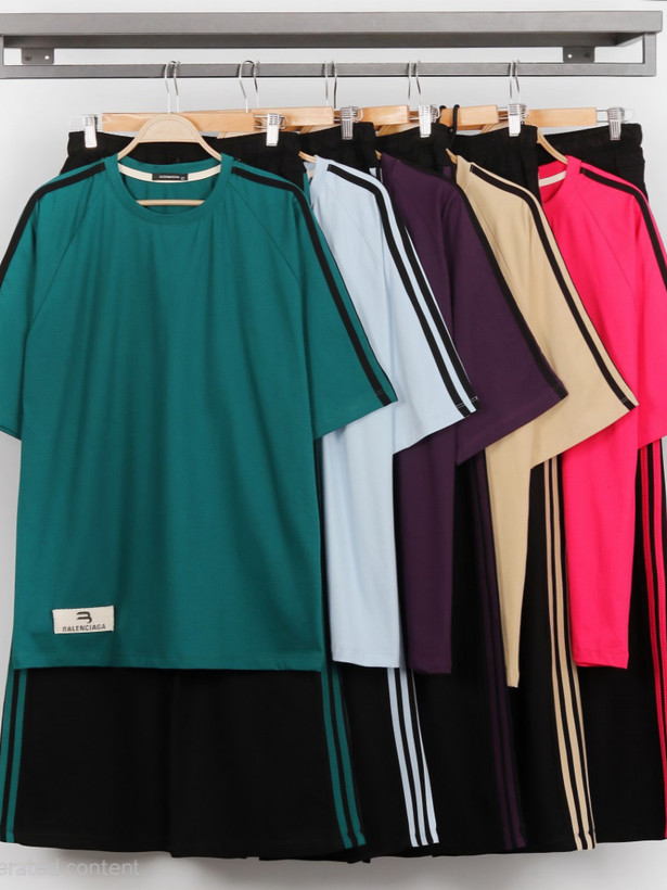 ست تیشرت لانگ و شلوار بگ پنبه گلکسی بالنسیاگا