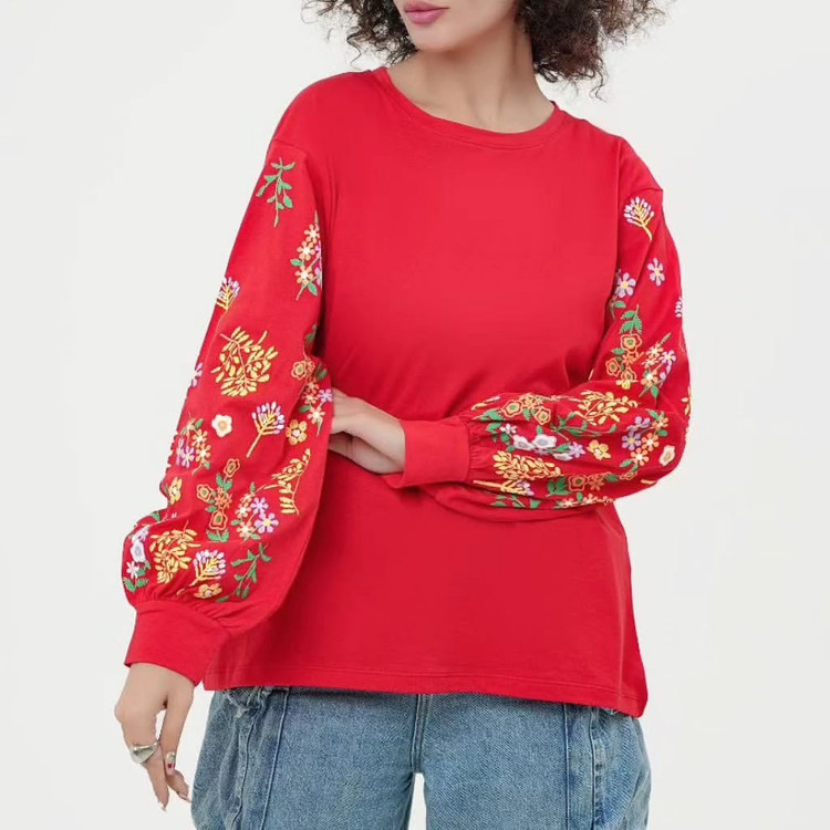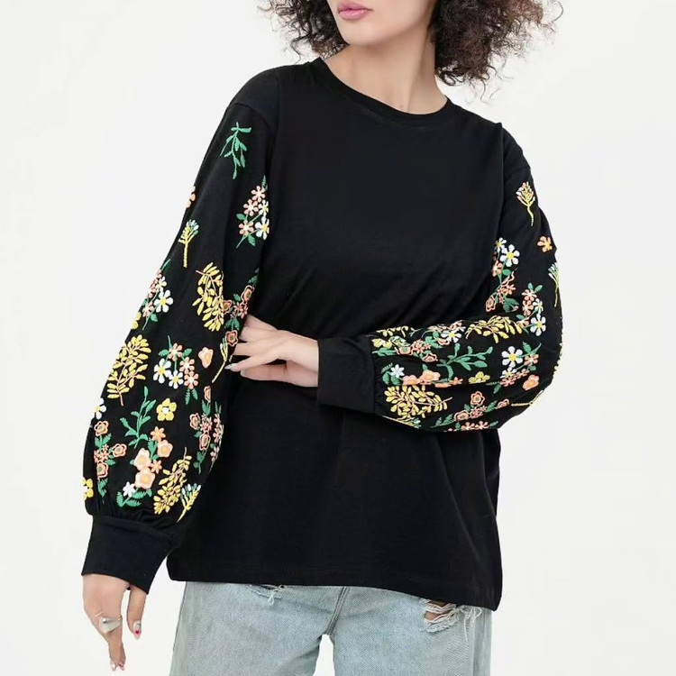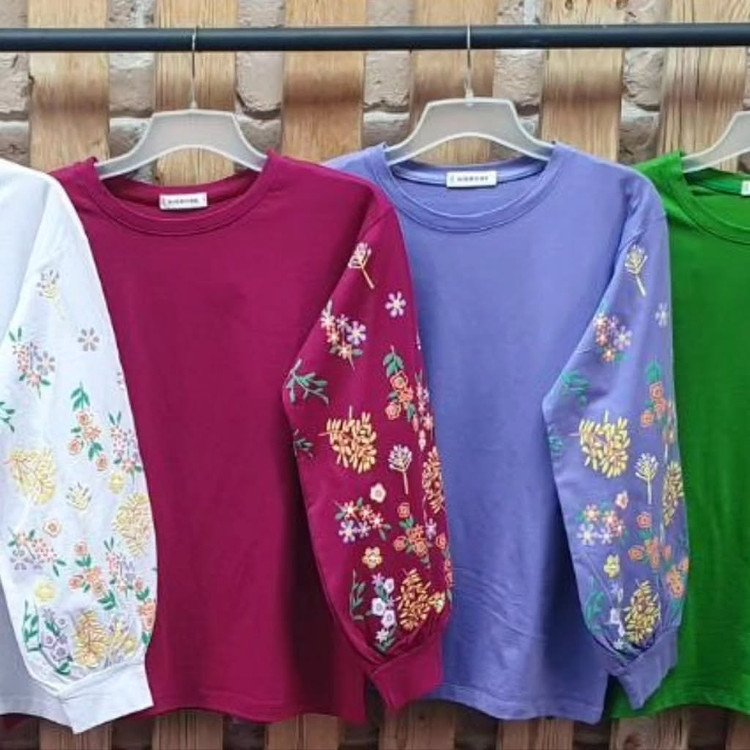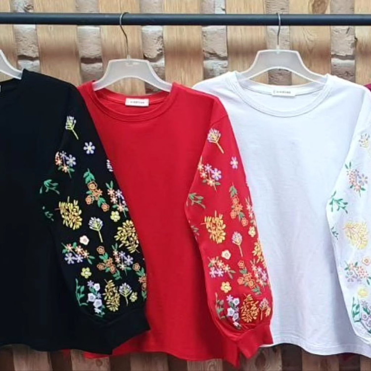 بلوز زنانه نخ پنبه آستین پر گل
