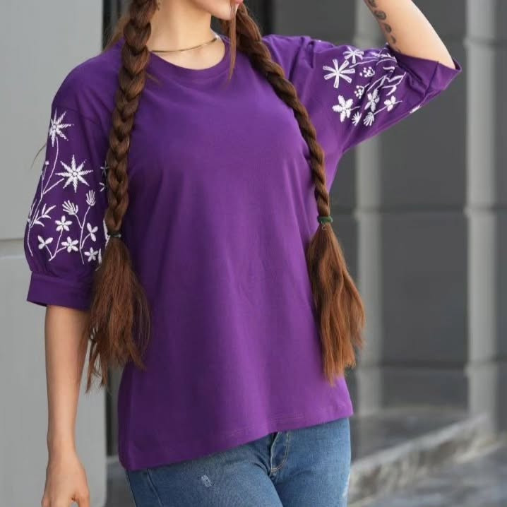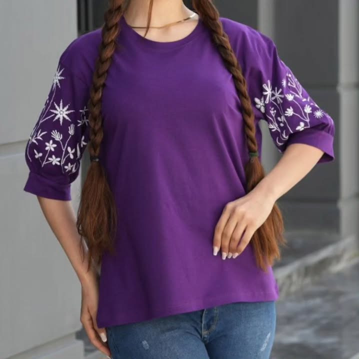 تیشرت زنانه نخ پنبه آستین سه ربع